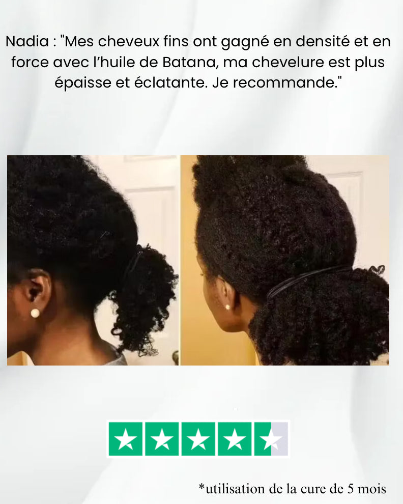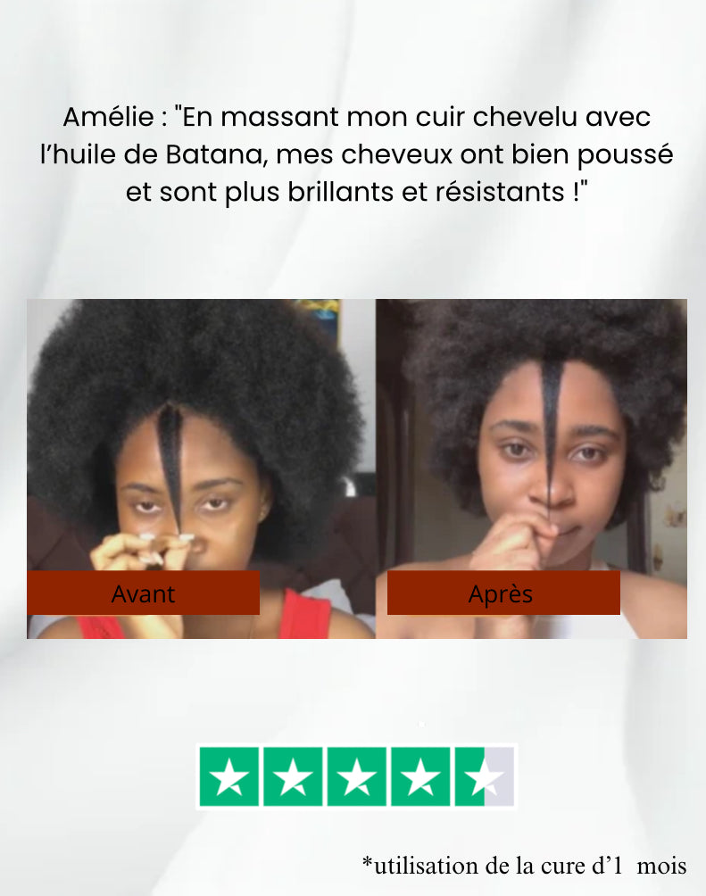 Appliquez l’huile de Batana directement sur votre cuir chevelu. Vous pouvez aussi la réchauffer en la frottant entre vos mains avant application. Un pot d’huile de Batana suffit généralement pour un mois d’utilisation.